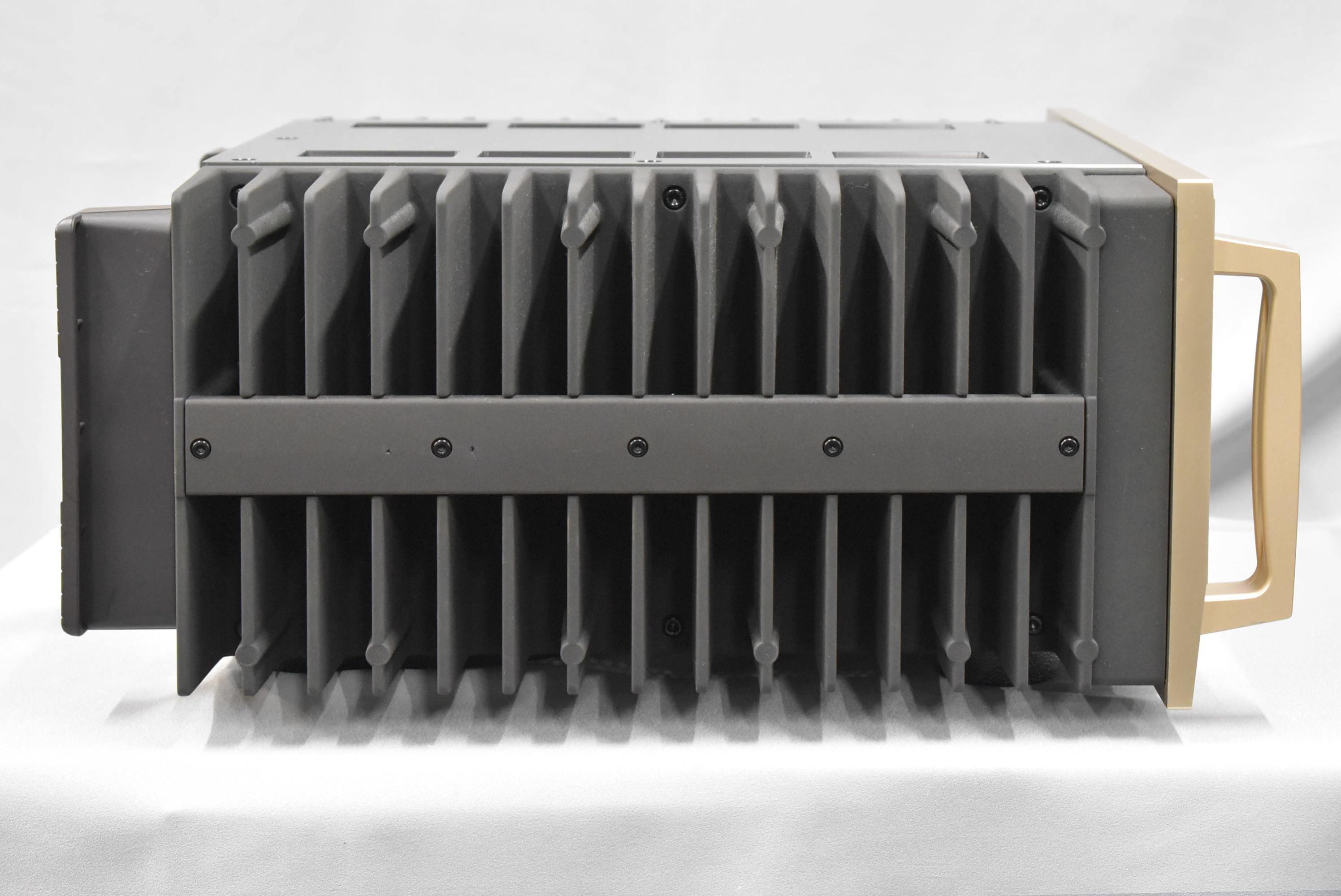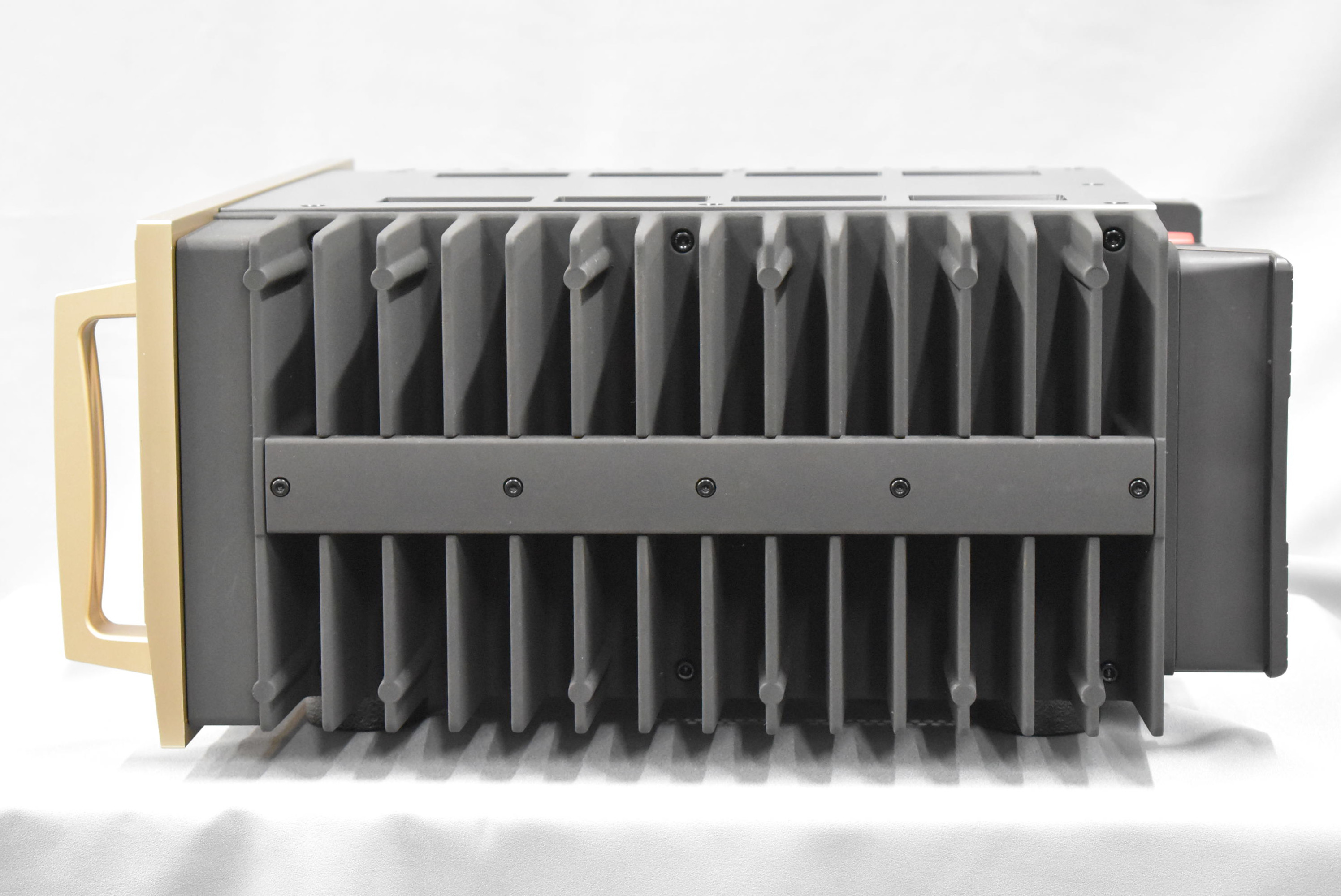 | 仕様 | ■定格出力:800W+800W(1Ω)、250W+250W(4Ω)、125W+125W(8Ω) ■全高調波歪率:0.05%(2Ω)、0.03%(4~16Ω) ■周波数特性:20~20,000Hz(定格出力時) ■ダンピングファクター:1000 ■入力:RCA1系統、XLR1系統 ■スピーカー端子:バイワイヤー対応 ■電源:AC100V 50/60Hz ■消費電力:117W(無入力時)、820W(電気用品安全法)、535W(8Ω定格出力時) |