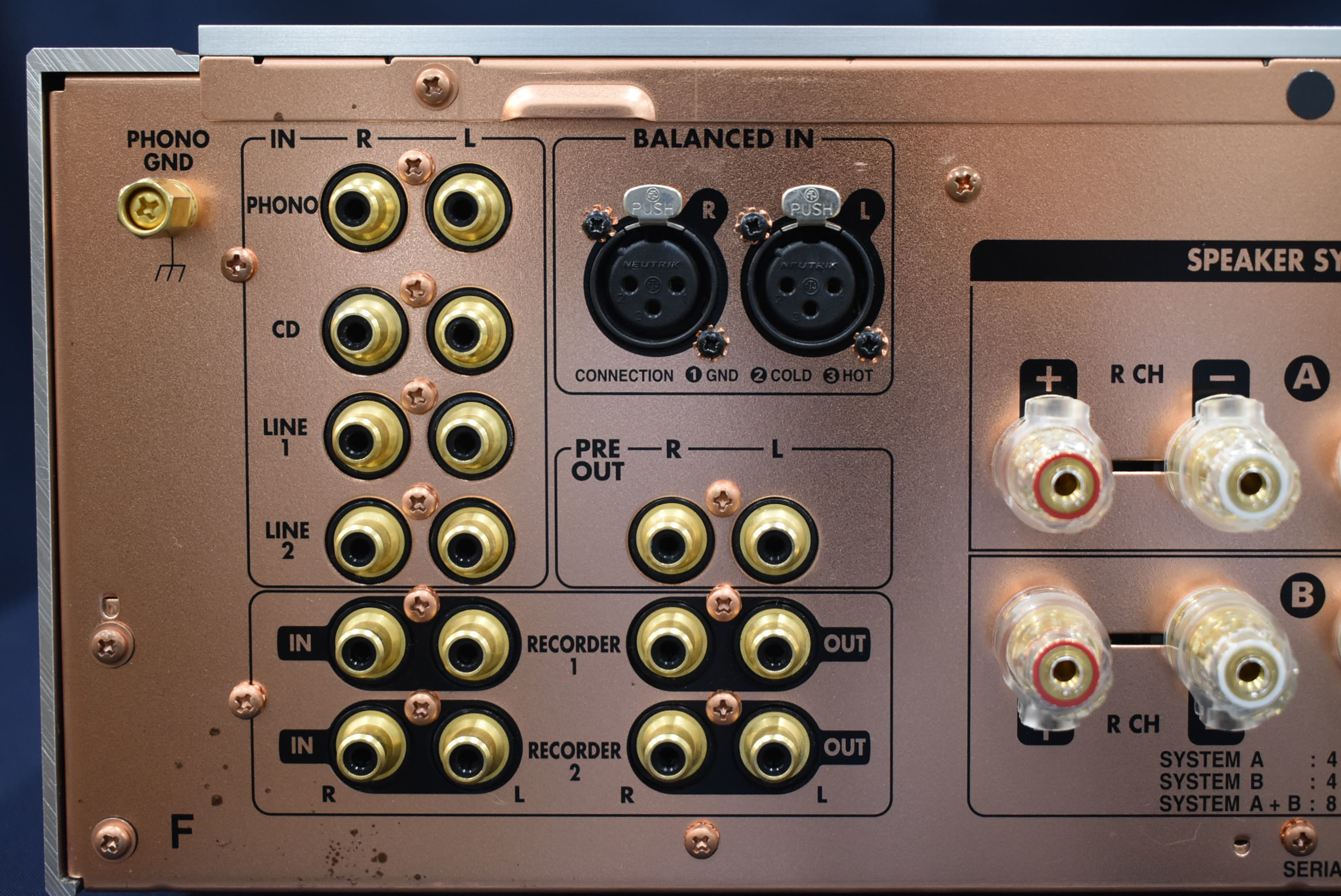 仕様 | ■定格出力(20Hz~20kHz両ch同時駆動):100W×2(8Ω)、200W×2(4Ω) ■全高調波歪率(20Hz~20kHz両ch同時駆動、8Ω):0.01% ■波数特性(CD、1W,8Ω):5Hz~120kHz±3dB ■SN比(IHF Aネットワーク、1W,8Ω):PHONO(MC)76dB(0.5mV入力)、PHONO(MM)90dB(5mV入力)、HIGH LEVEL 96dB(500mV入力) ■入出力端子:フォノ入力1、ライン入力4、テープ入出力2■消費電力:300W |